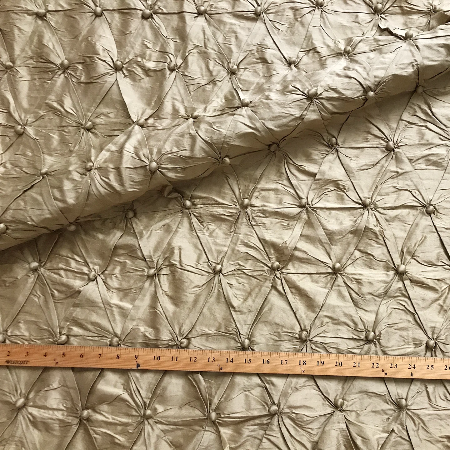 This elegant fabric features a gold dobby dot pintuck design, offering a refined texture and subtle dimension. Crafted from a luxurious silk blend, this lightweight fabric provides a soft hand and natural sheen, making it ideal for decorative and light upholstery applications.