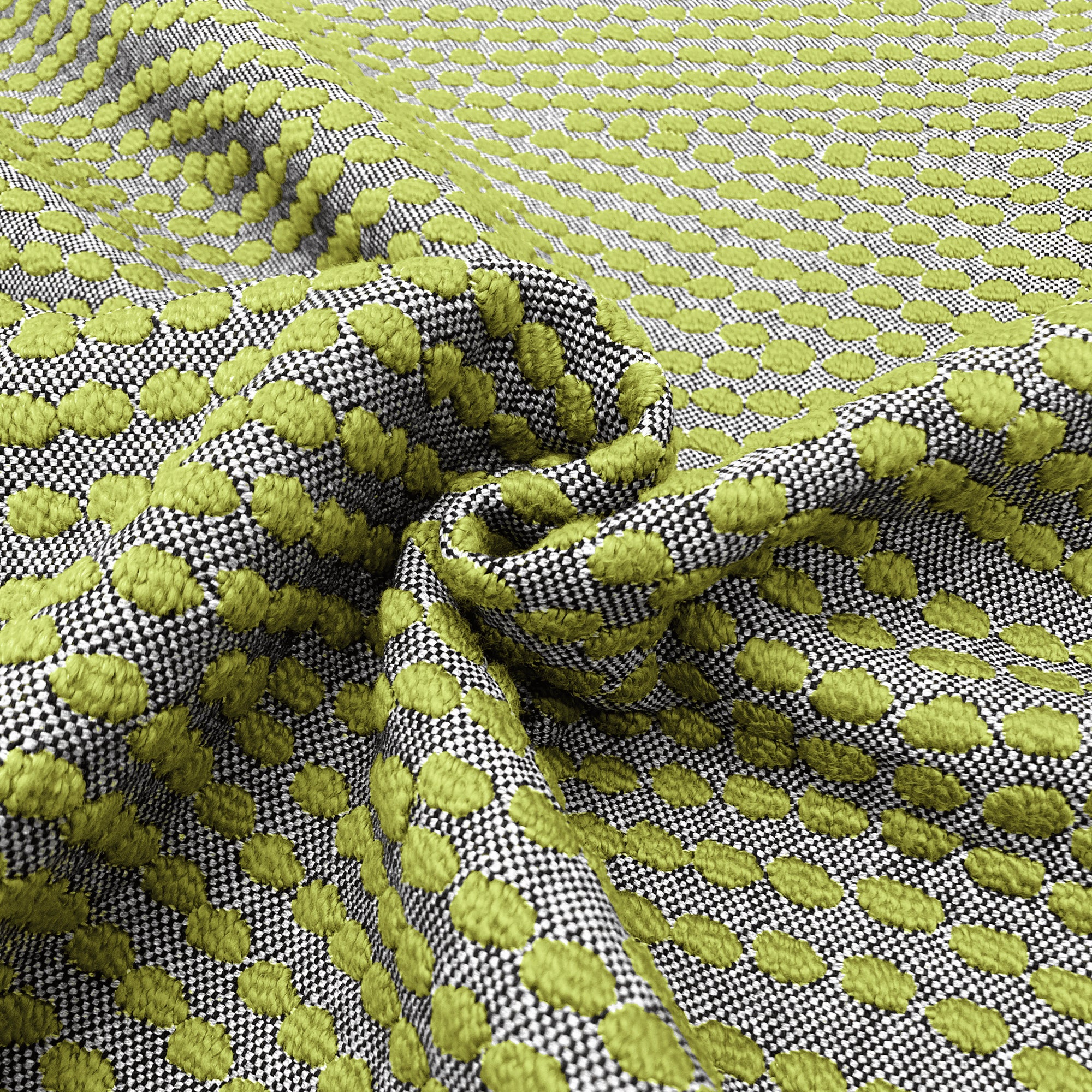 This luxurious Avocado Textured Dotted Upholstery Fabric 54" meets flair with versatility, offering the perfect personal touch for any boho aesthetic. Designed and crafted by skilled textile artisans this fabric is made to last and never compromises on quality. All fabric is sold by the yard in 1-yard increments. Unfortunately, we do not accept returns on fabric orders but swatches are available.