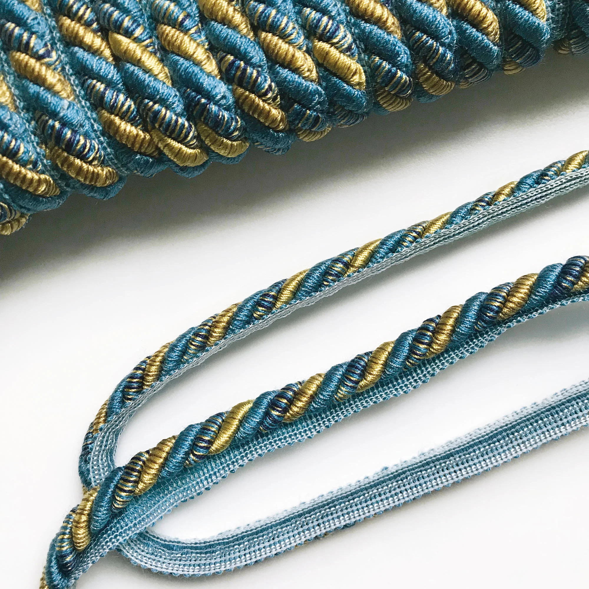Luxury Gold and Azure Blue Cord trim with Lip edge