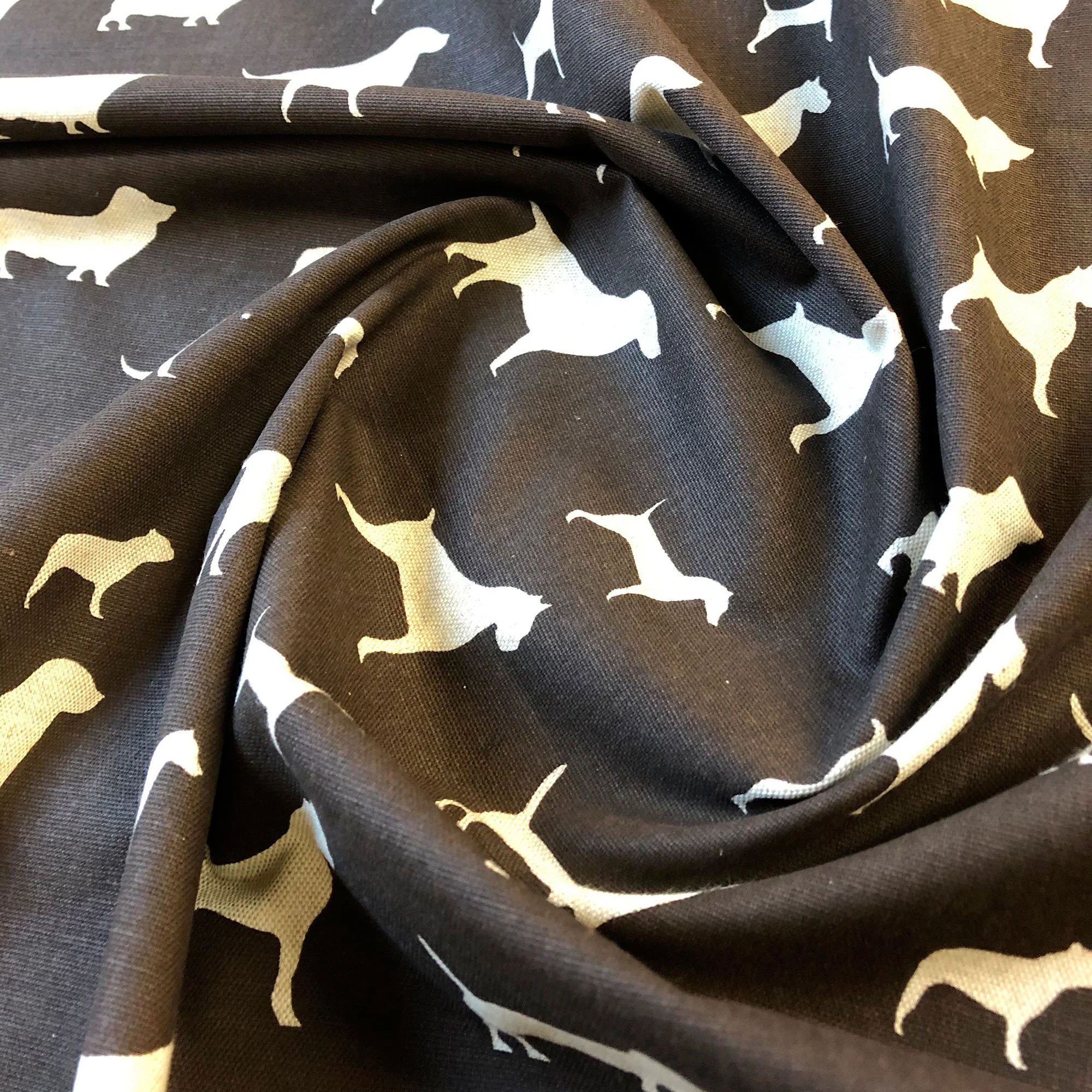 Brown and White Dog Silhouette Cotton Upholstery Fabric 54"