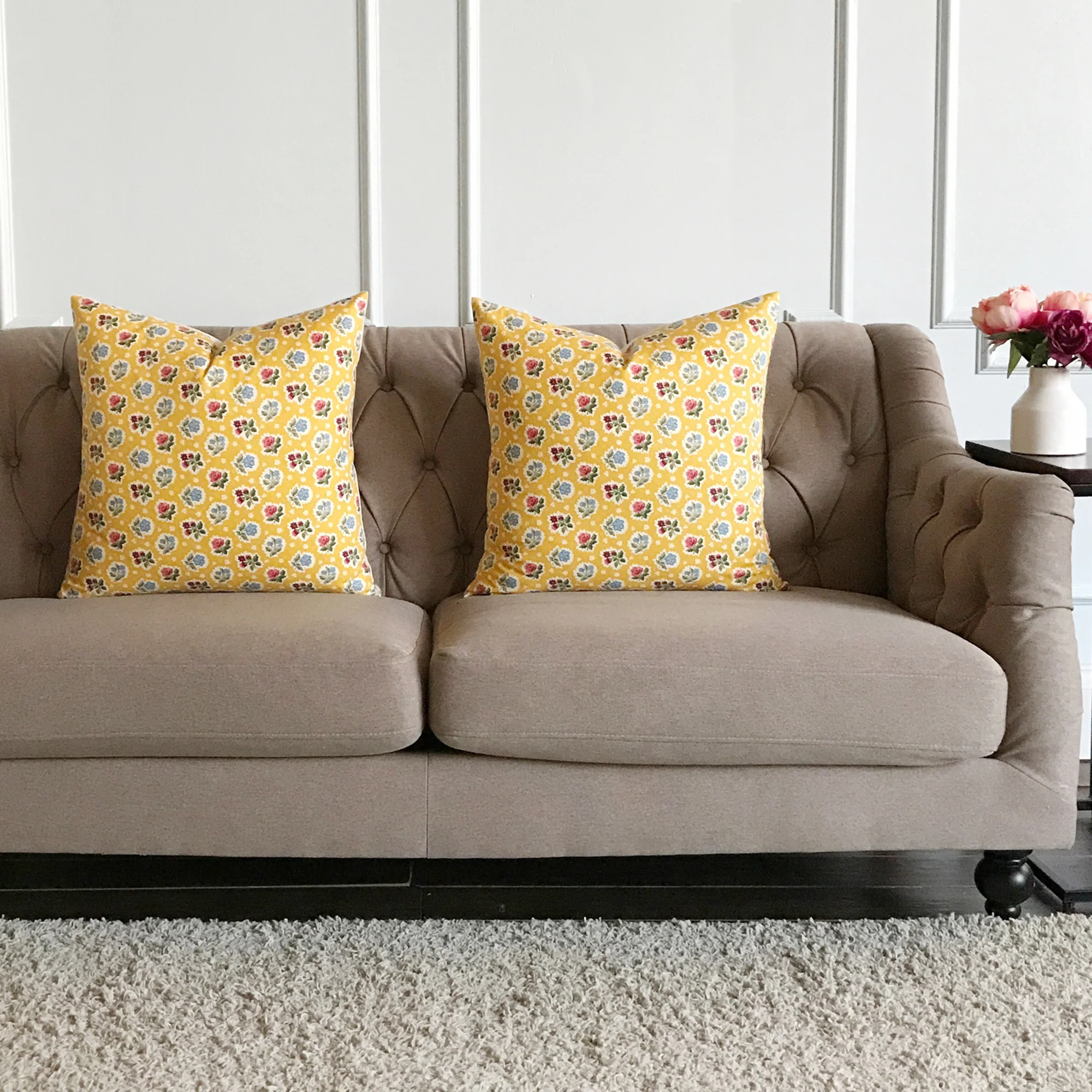 Bright Yellow English Country Floral Throw Pillow Cover 22x22