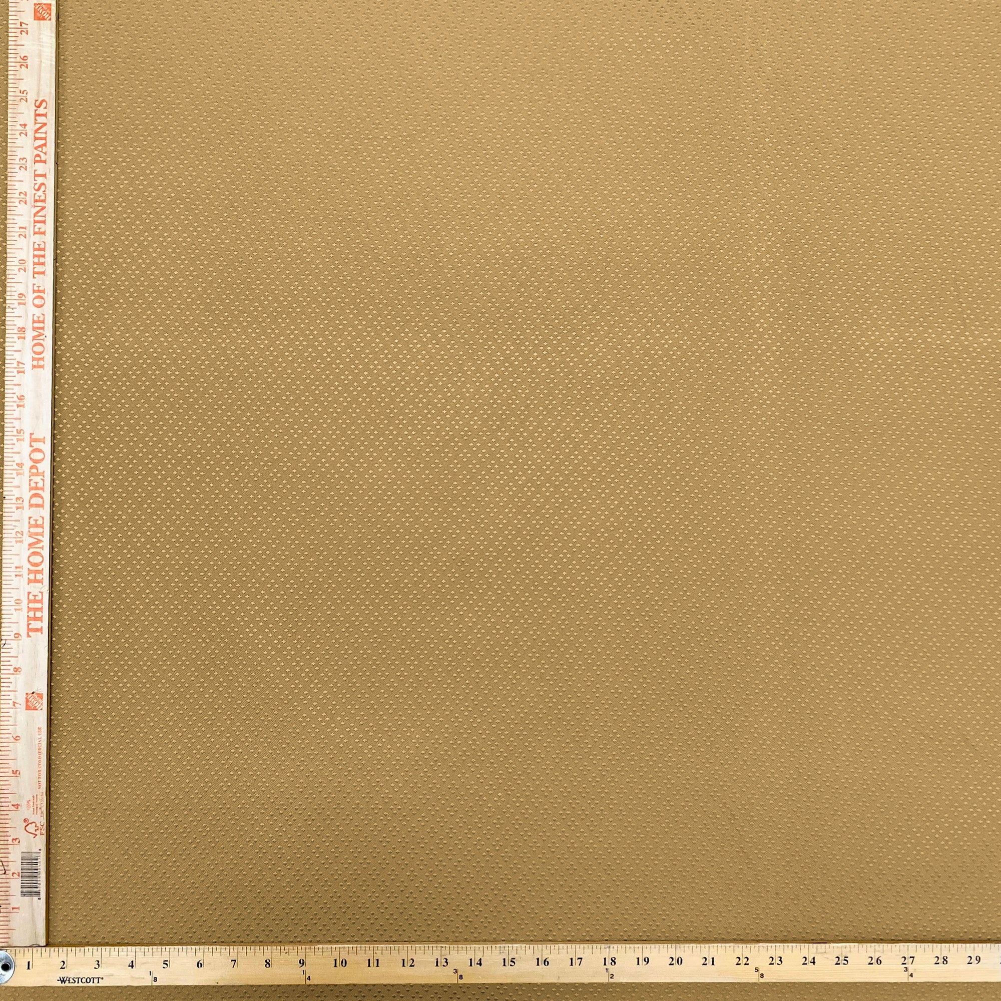 Textured jacquard upholstery fabric with dotted pattern in gold.