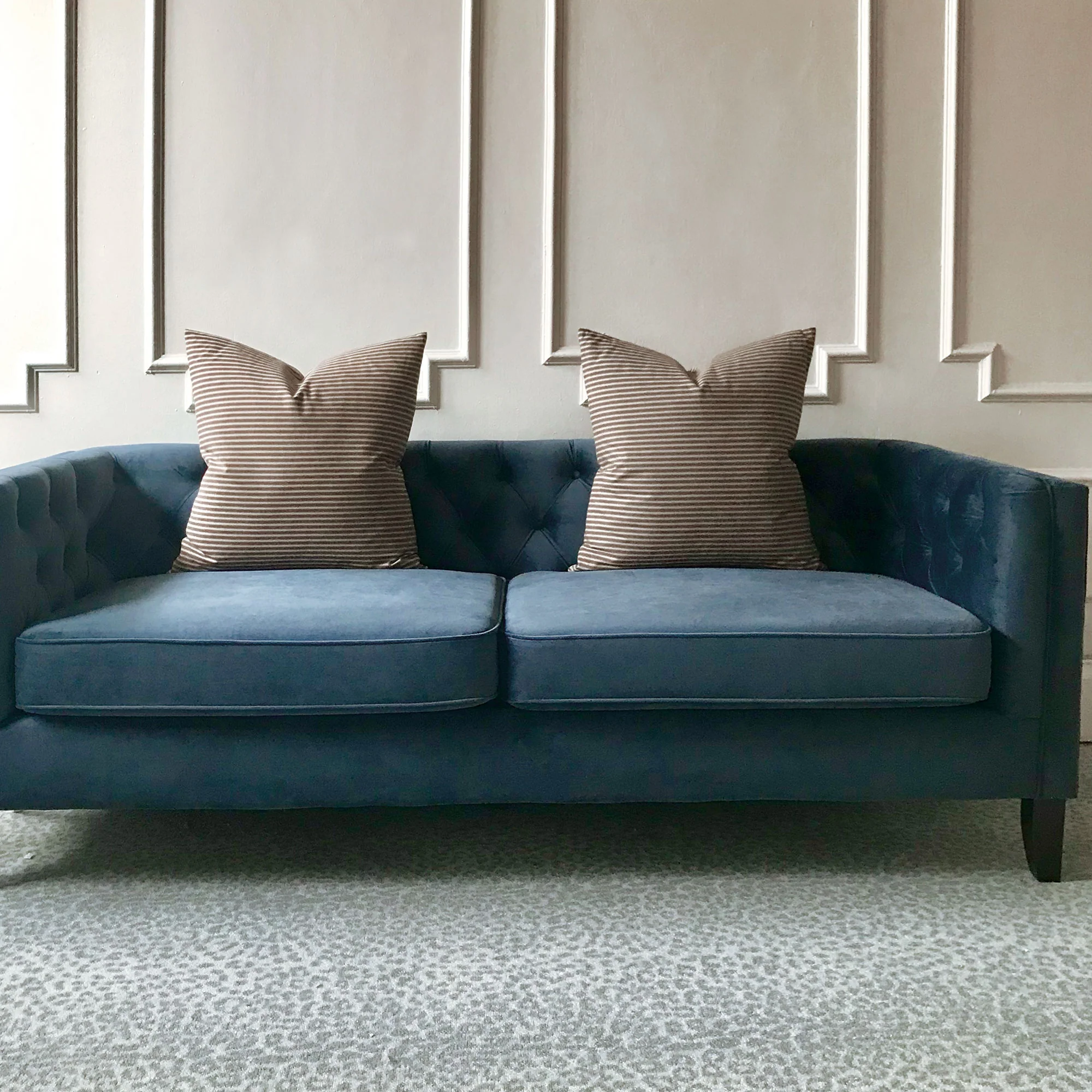 - Throw pillow cover with a classic brown pinstripe design on natural-toned background