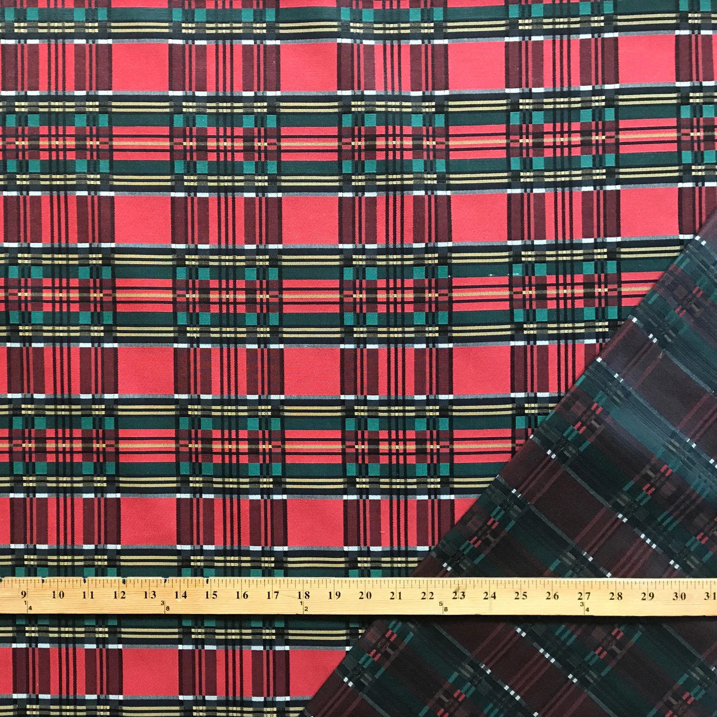 Red Country Vintage Plaid Cotton Upholstery Fabric 42"