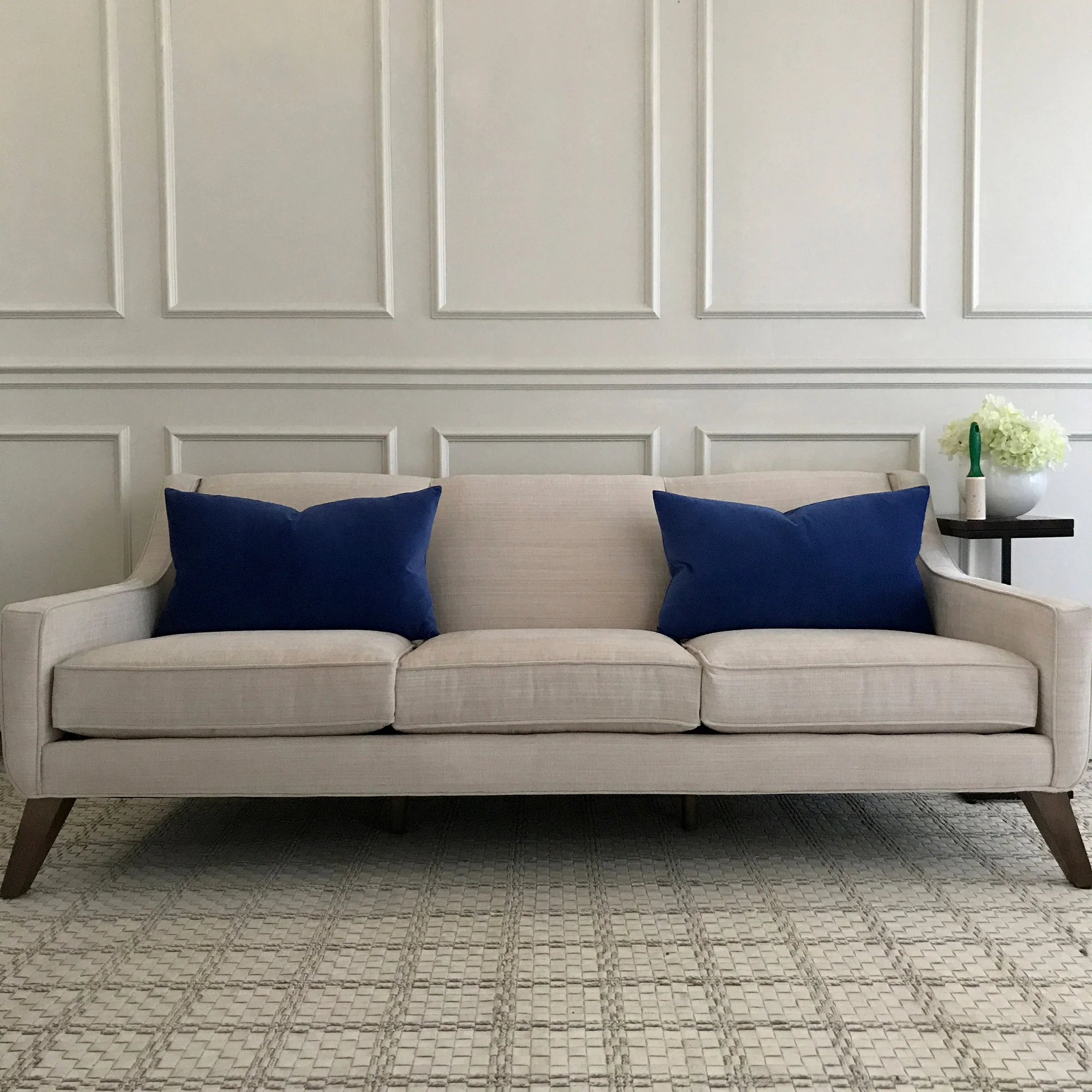 - Deep blue velvet adds a luxurious and calming accent