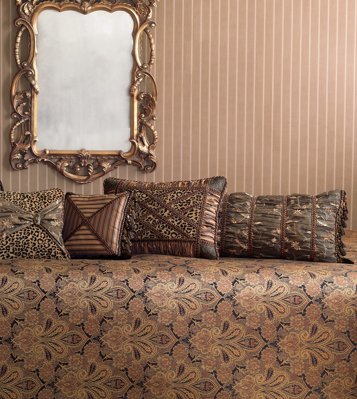 - Ruched lumbar pillow with a floral pattern in brown
