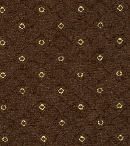 This classic dobby dot fabric features a refined gold pattern set against a rich chocolate brown ground, offering a timeless and elegant look. Crafted from a blend of mercerized cotton, rayon, and polyester, this fabric delivers both durability and a subtle sheen, making it suitable for a wide range of decorative and functional applications.