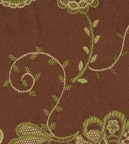 This brocade fabric features a delicate leaf motif in rich brown and green tones, offering a classic and refined aesthetic. Woven from a viscose and polyester blend, this fabric provides a subtle sheen and structured durability. With a heavy-duty rub rating, it is well suited for both decorative and high-use applications across a variety of interior settings.