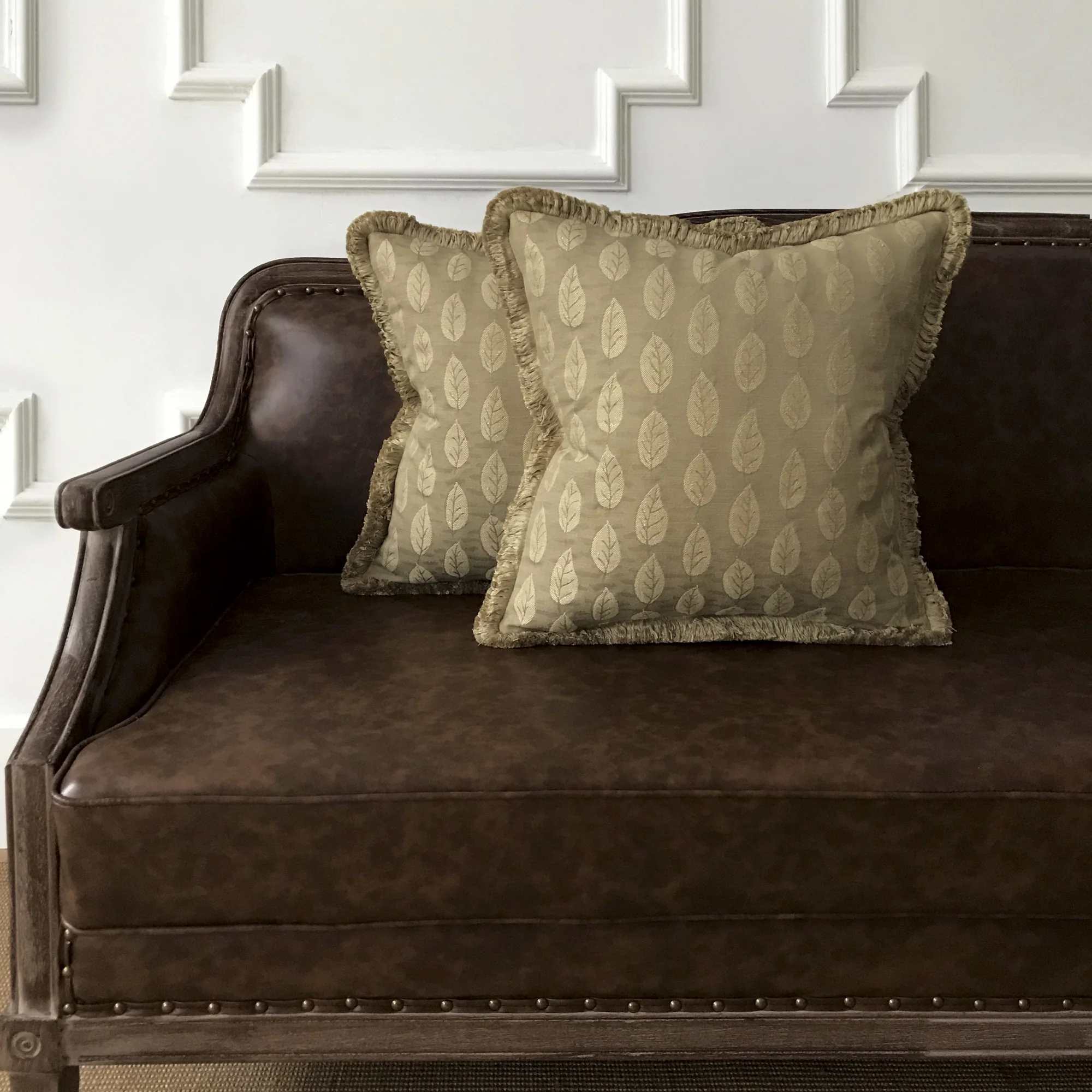 ⁌ Bring a touch of rustic elegance to your space with our Lodge Decor Tan Leaf Botanical Throw Pillow Cover in 18x18. Featuring a subtle botanical leaf pattern in warm tan tones, this pillow cover adds natural charm and sophistication to any room. The brush fringe edge provides texture and a refined finish, while the self-backed construction ensures durability and style.