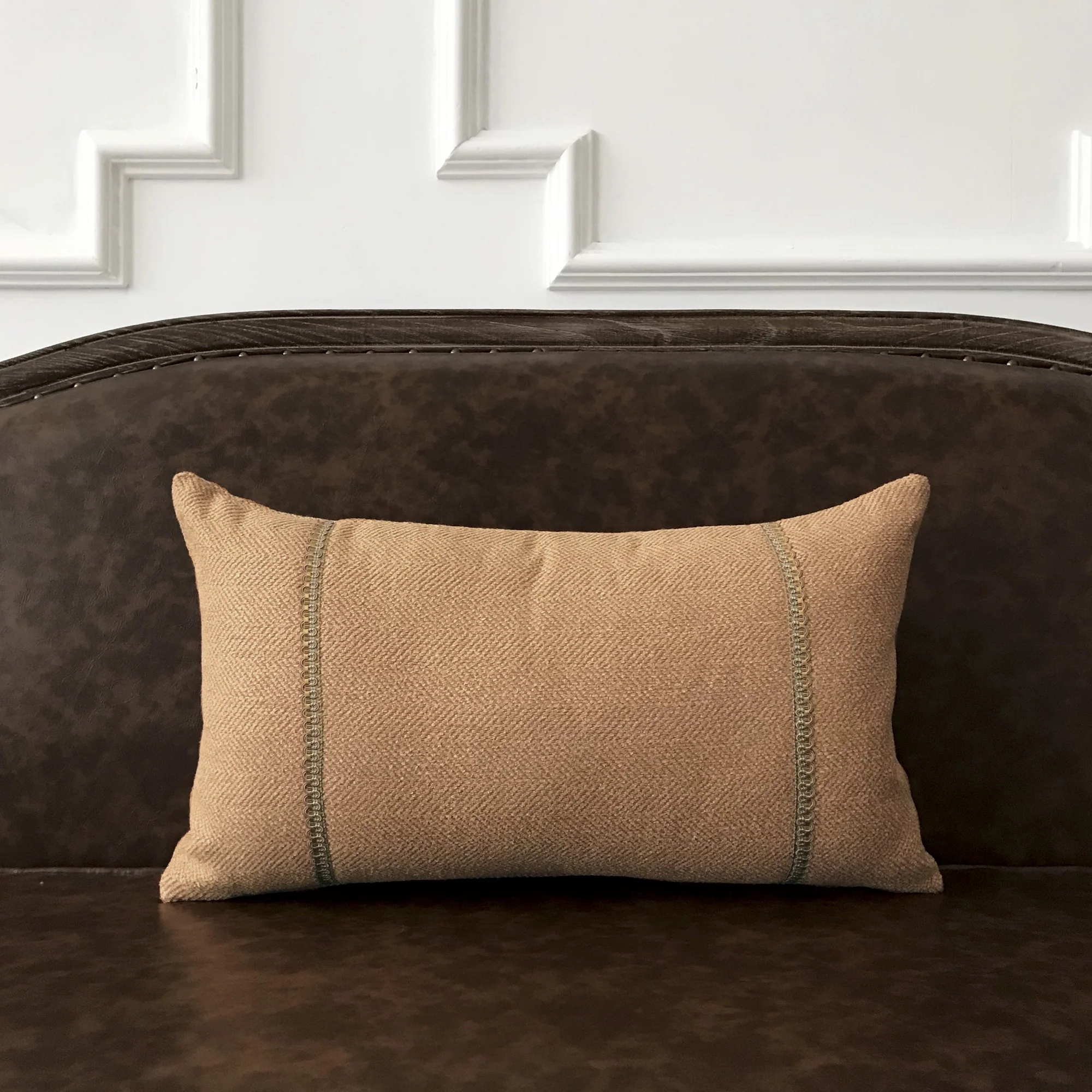 Tan Herringbone Border Trim Lumbar Pillow Cover 13x22