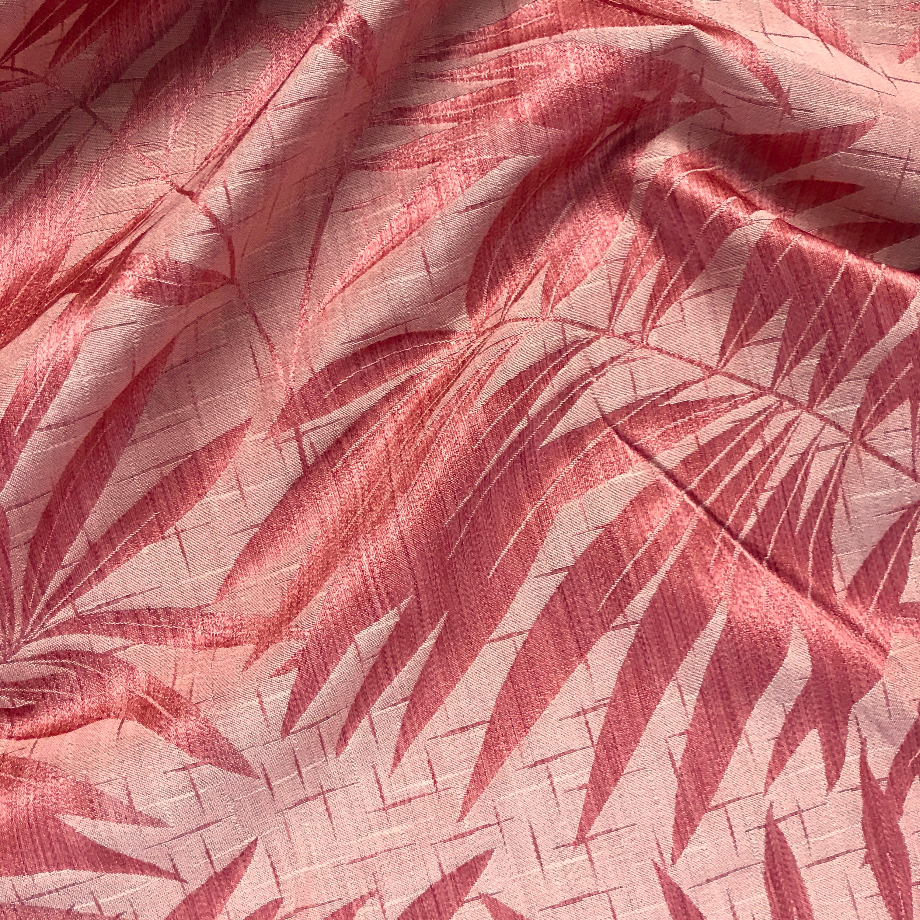 Gorgeously hued botanical fabric with light sheen and tropical style.